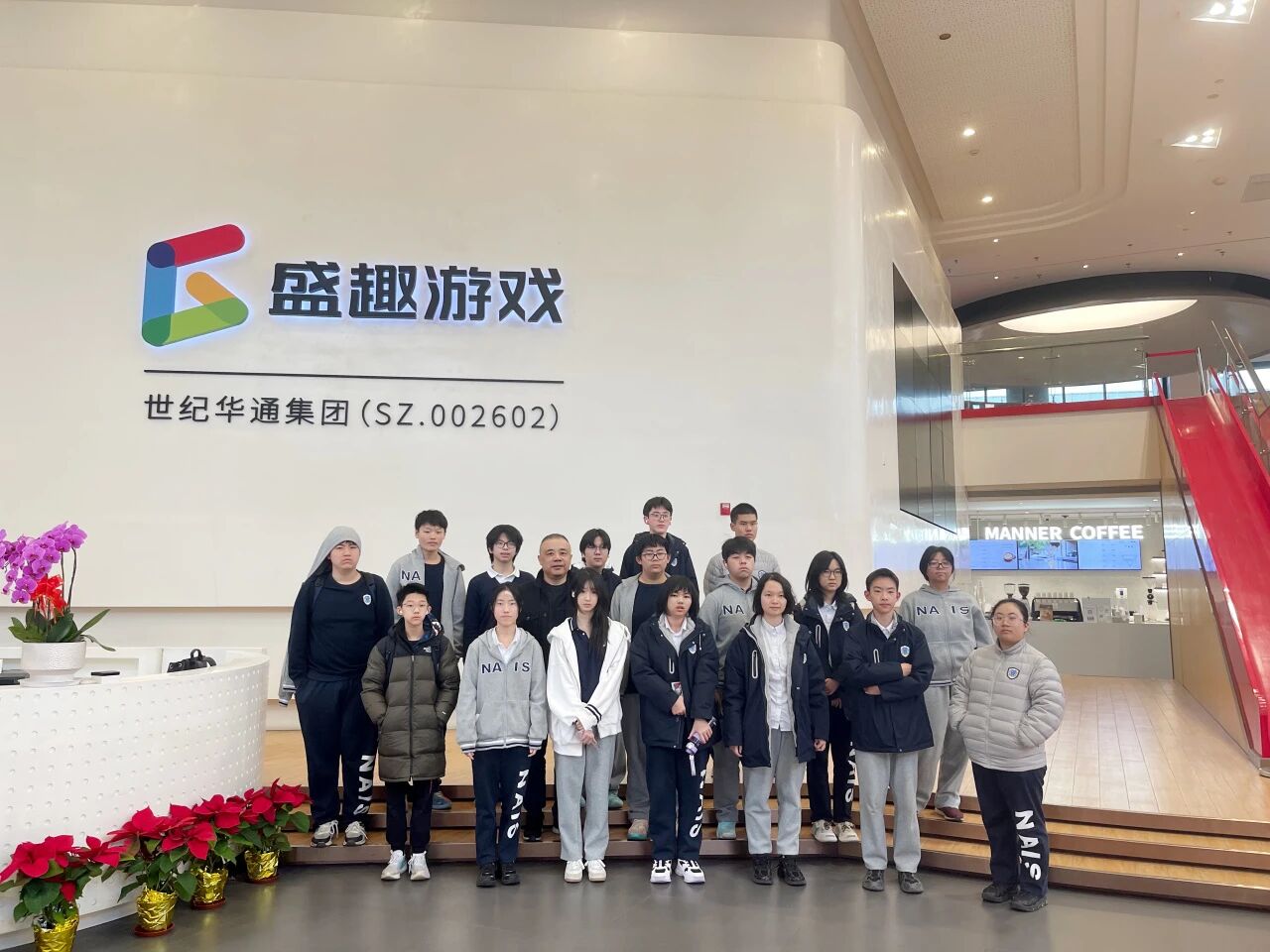 上海诺美学校的同学们在盛趣游戏合影留念